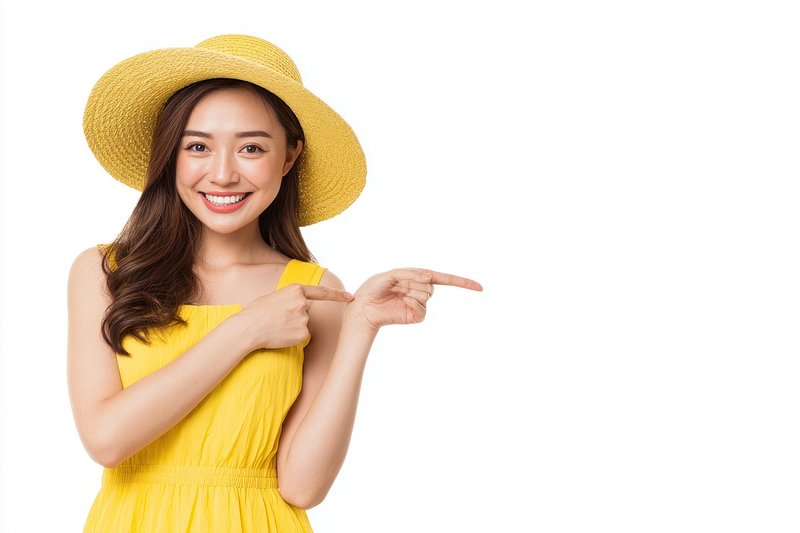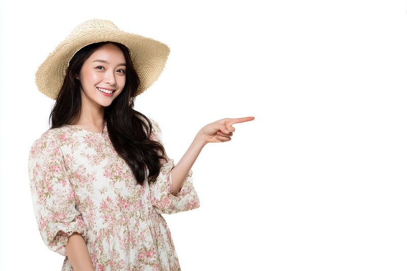 Smiling woman pointing right. https://www.rawpixel.com/image/25586408/smiling-woman-pointing-rightView license
