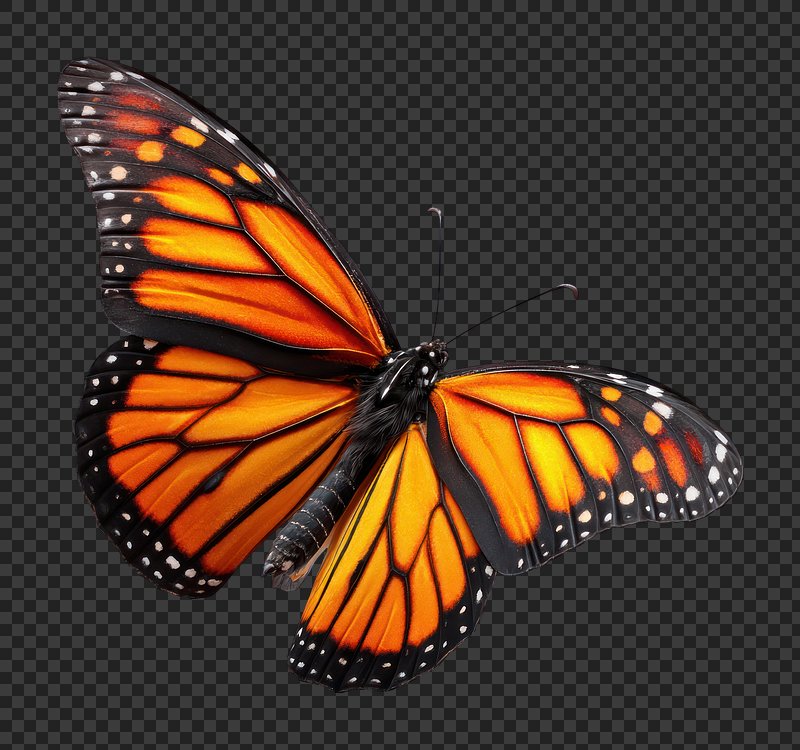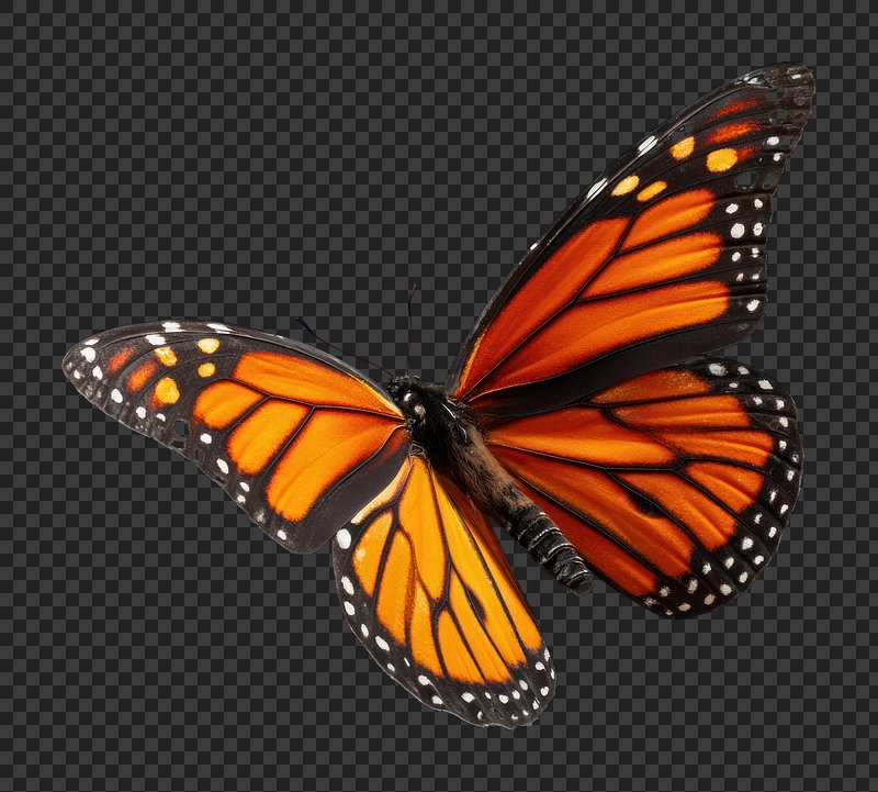 PNG Vibrant monarch butterfly in flight. https://www.rawpixel.com/image/25815755/png-vibrant-monarch-butterfly-flightView license