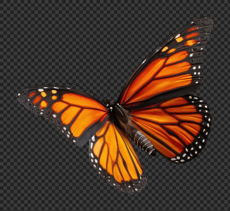 PNG Vibrant monarch butterfly in flight. https://www.rawpixel.com/image/25815338/png-vibrant-monarch-butterfly-flightView license