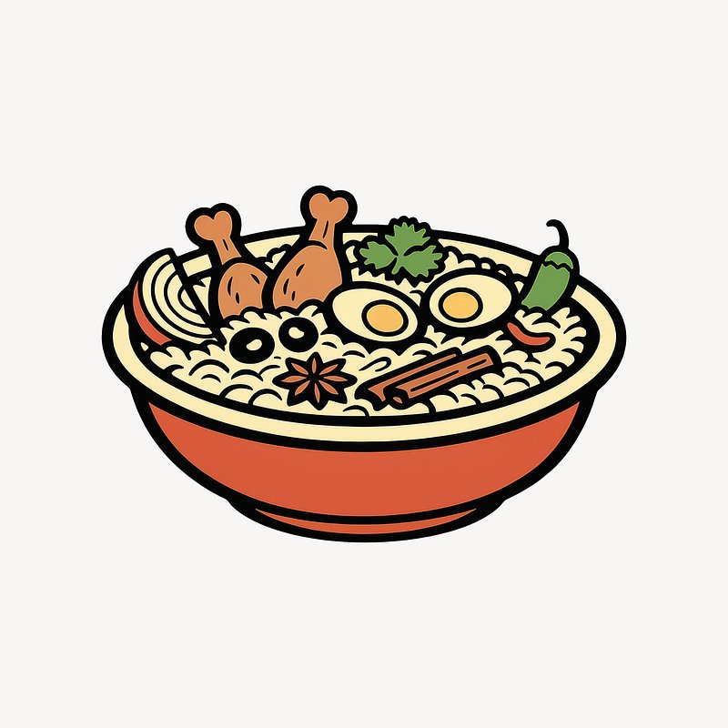 PNG Delicious biryani bowl illustration. https://www.rawpixel.com/image/25386543/png-delicious-biryani-bowl-illustrationView license