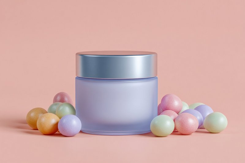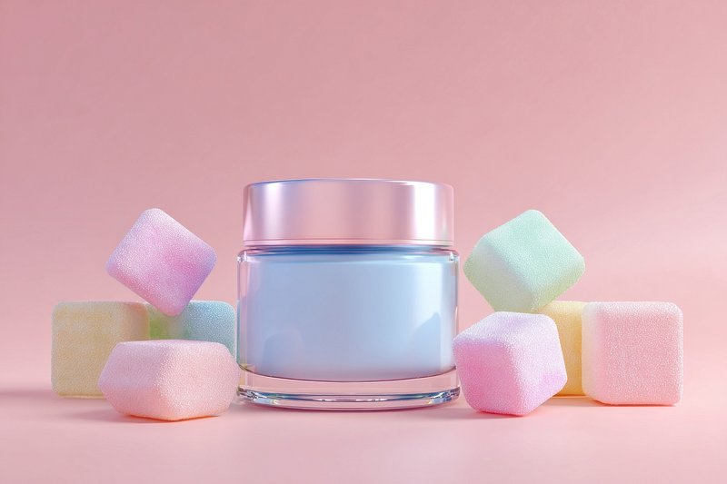 Pastel skincare jar with marshmallows. https://www.rawpixel.com/image/24933837/pastel-skincare-jar-with-marshmallowsView license
