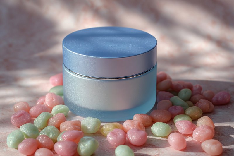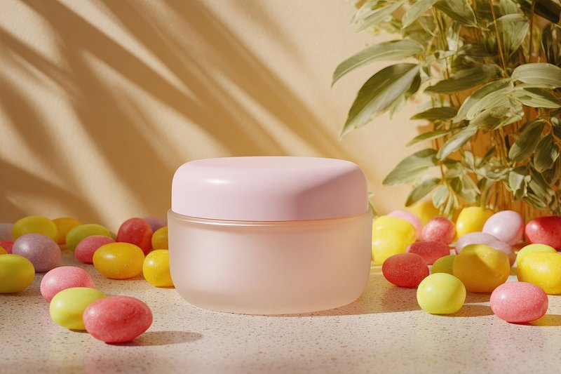 Elegant skincare jar surrounded candies. https://www.rawpixel.com/image/24933835/elegant-skincare-jar-surrounded-candiesView license