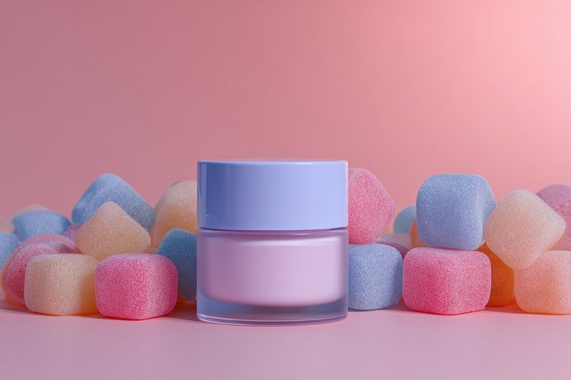 Pastel skincare amidst colorful marshmallows. https://www.rawpixel.com/image/24933642/pastel-skincare-amidst-colorful-marshmallowsView license