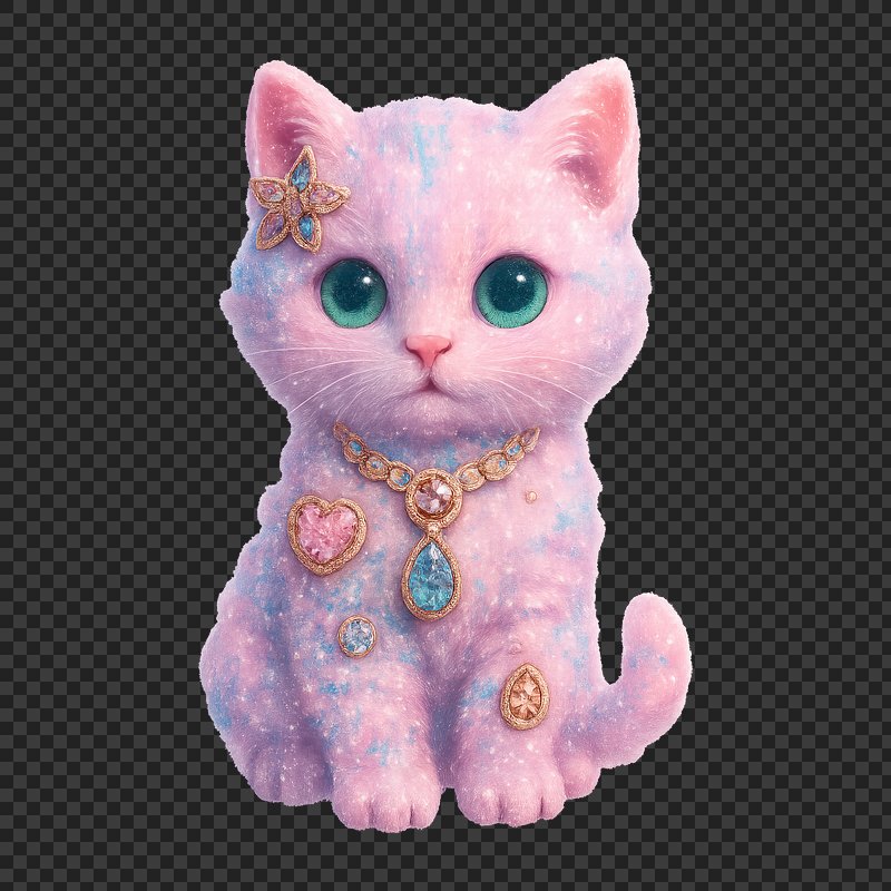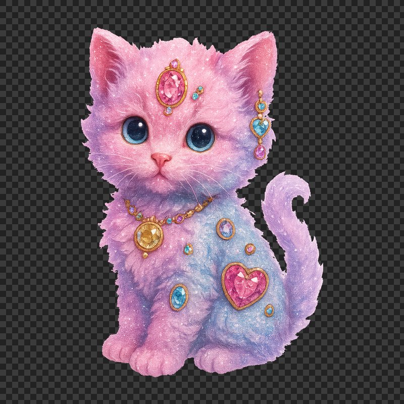 PNG Whimsical jeweled pink kitten https://www.rawpixel.com/image/23591044/png-whimsical-jeweled-pink-kittenView license