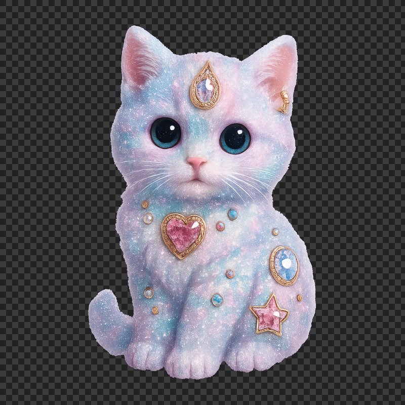 PNG Whimsical jeweled pastel kitten https://www.rawpixel.com/image/23590725/png-whimsical-jeweled-pastel-kittenView license