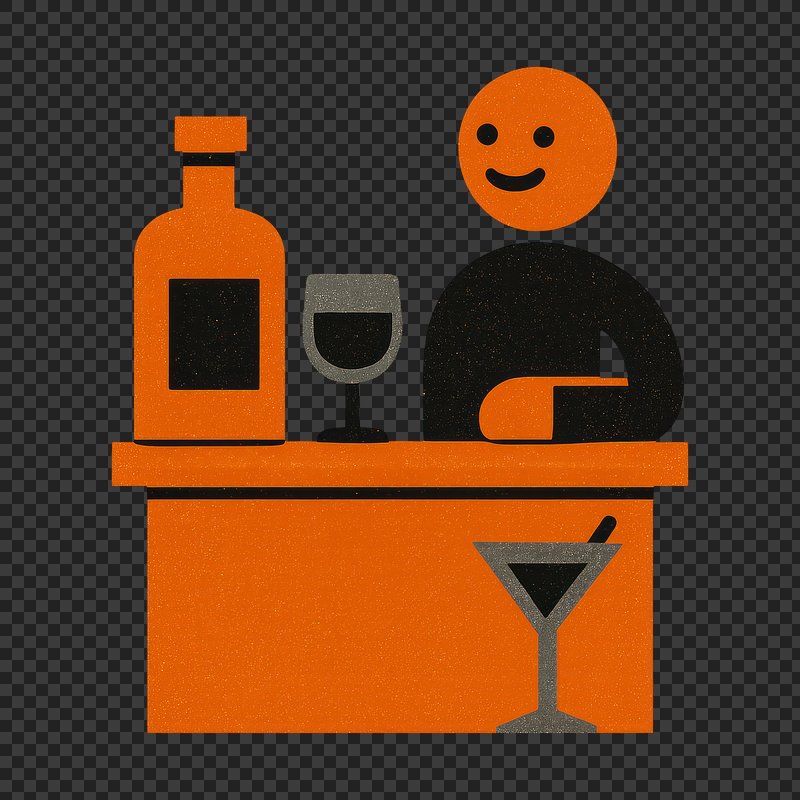 PNG Bar icon with bartender silhouette. https://www.rawpixel.com/image/22459920/png-bar-icon-with-bartender-silhouetteView license