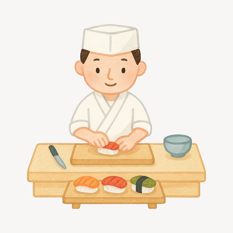 Sushi chef preparing delicious sushi. https://www.rawpixel.com/image/20745051/sushi-chef-preparing-delicious-sushiView license