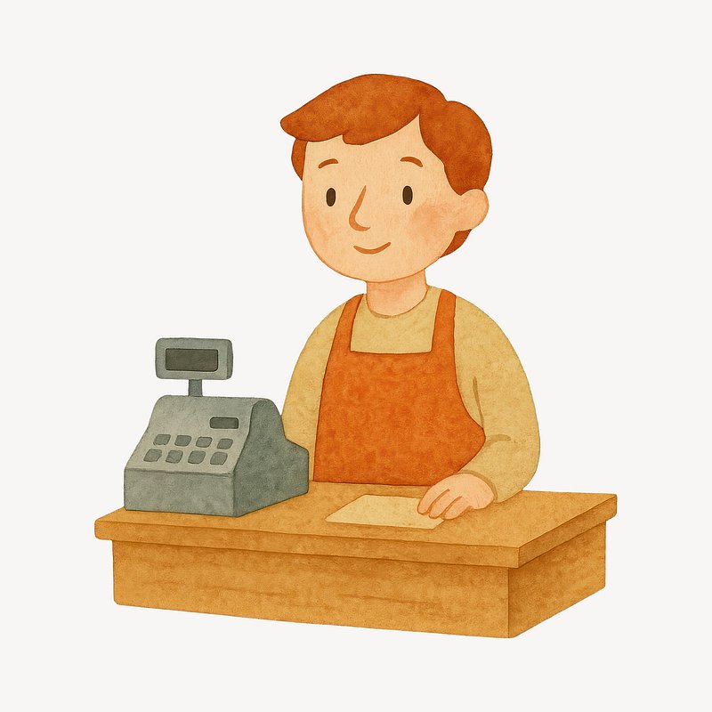Cartoon cashier at register https://www.rawpixel.com/image/20649232/cartoon-cashier-registerView license