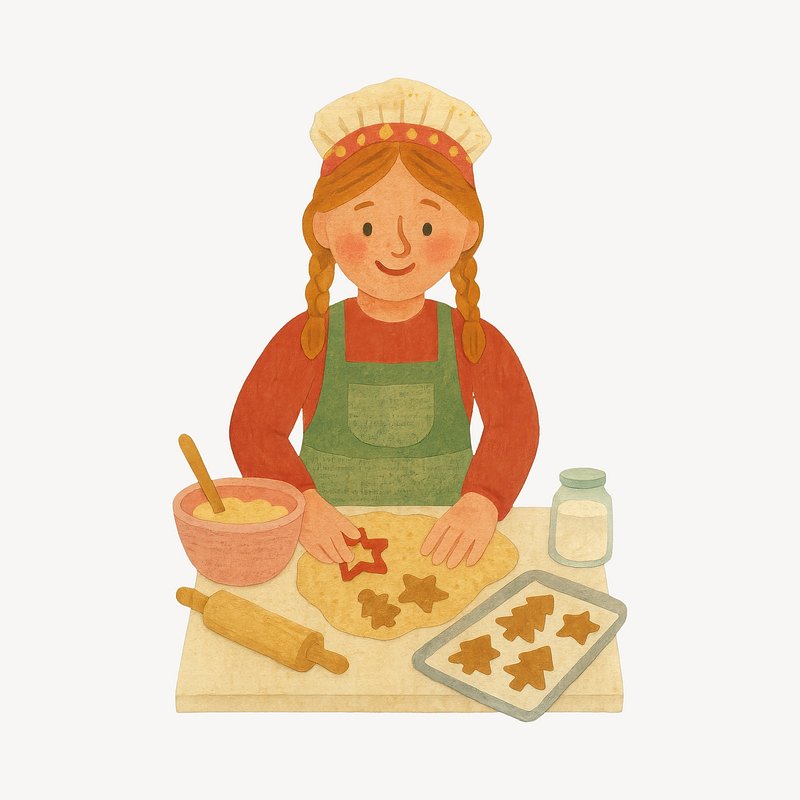 Girl baking cookies illustration. https://www.rawpixel.com/image/22905845/girl-baking-cookies-illustrationView license