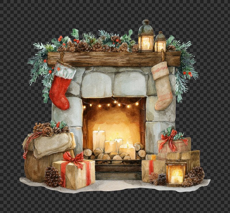PNG Cozy fireplace with festive decorations. https://www.rawpixel.com/image/24017093/png-cozy-fireplace-with-festive-decorationsView license