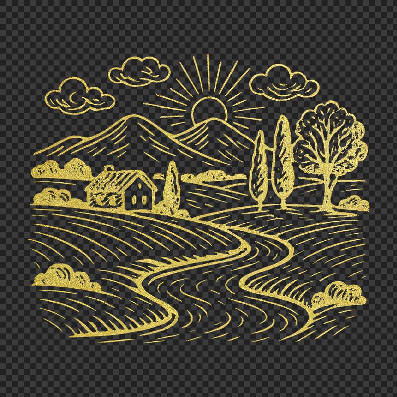 PNG Vintage rural landscape illustration. https://www.rawpixel.com/image/24136078/png-vintage-rural-landscape-illustrationView license