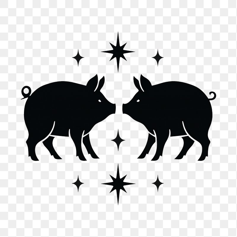 PNG Silhouette pigs with stars https://www.rawpixel.com/image/23834943/png-silhouette-pigs-with-starsView license