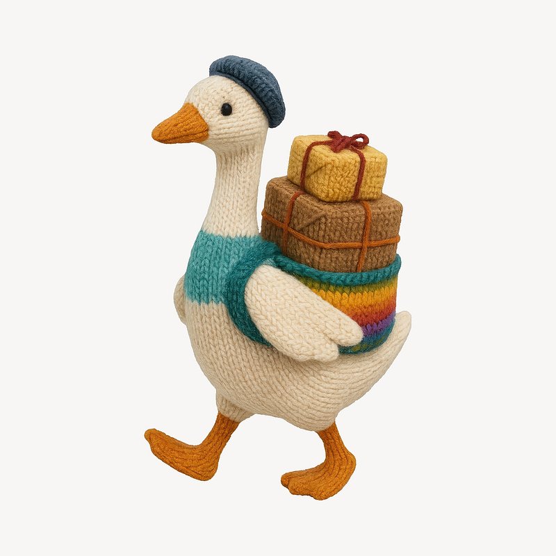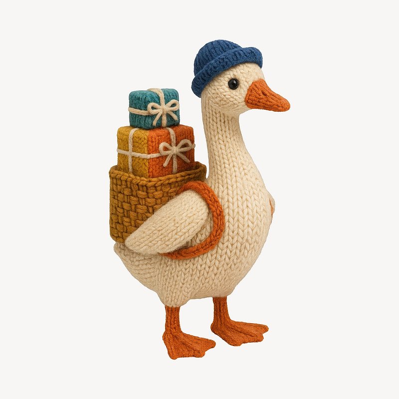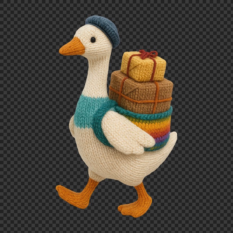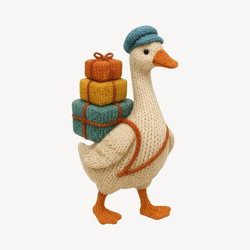 Knitted goose carrying colorful gifts. https://www.rawpixel.com/image/24609080/knitted-goose-carrying-colorful-giftsView license
