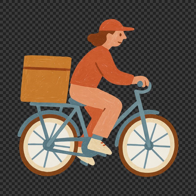 PNG Courier delivering package bicycle. https://www.rawpixel.com/image/24940387/png-courier-delivering-package-bicycleView license