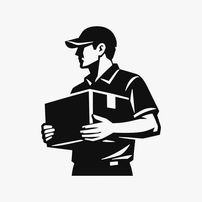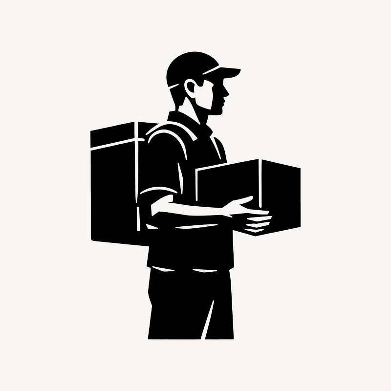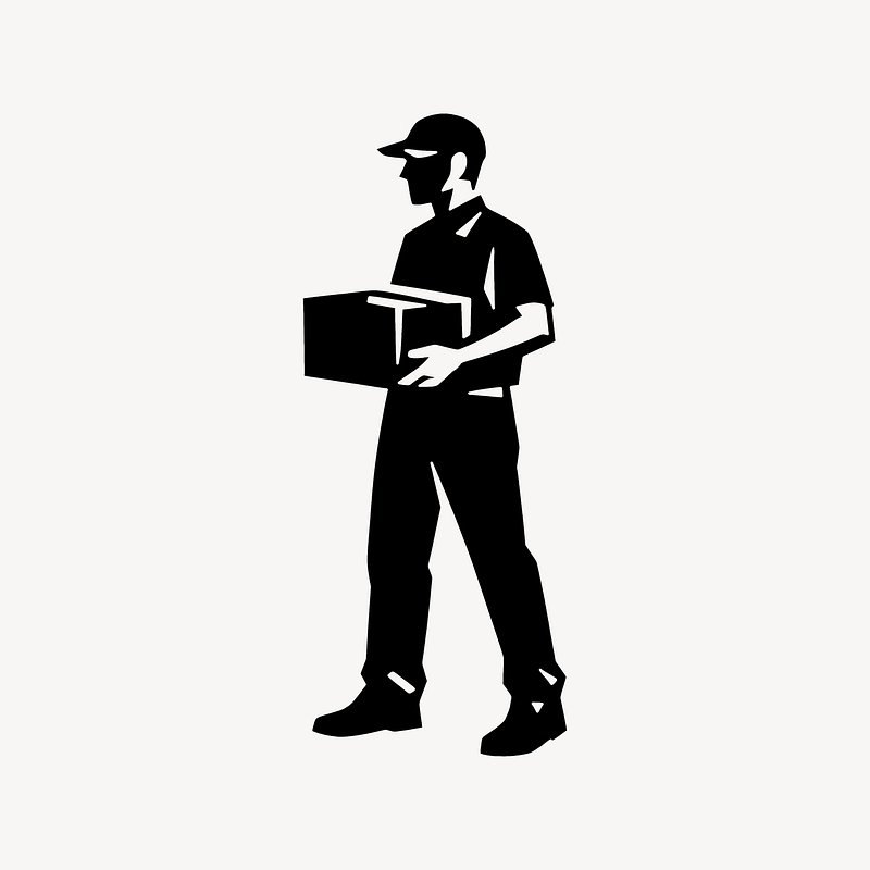 Delivery person holding package silhouette. https://www.rawpixel.com/image/25808134/delivery-person-holding-package-silhouetteView license