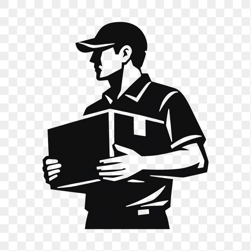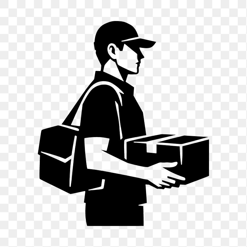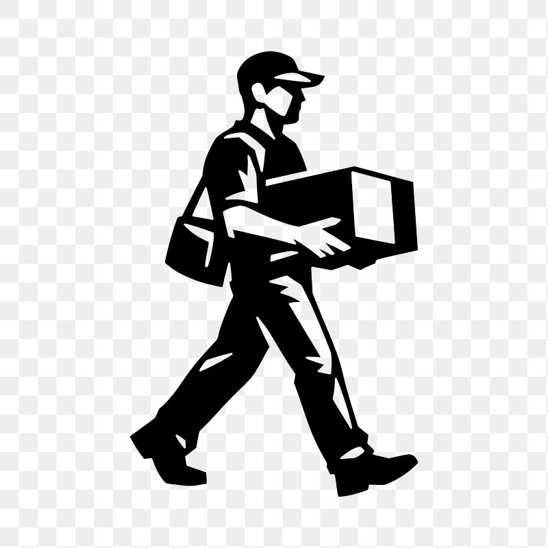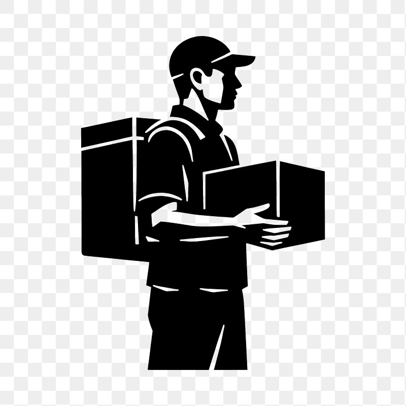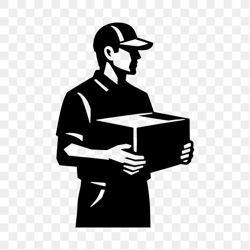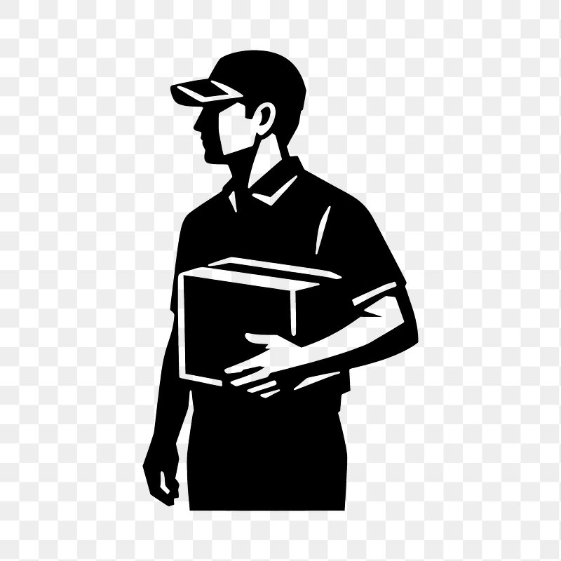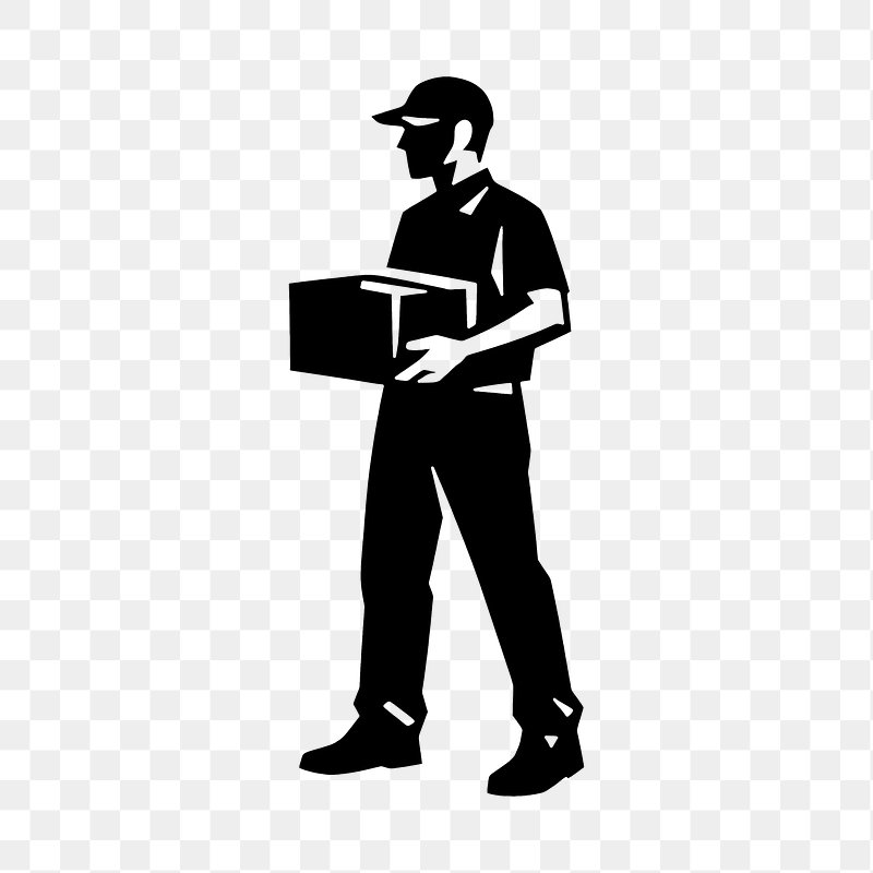 PNG Silhouette delivery person holding box. https://www.rawpixel.com/image/25670743/png-silhouette-delivery-person-holding-boxView license