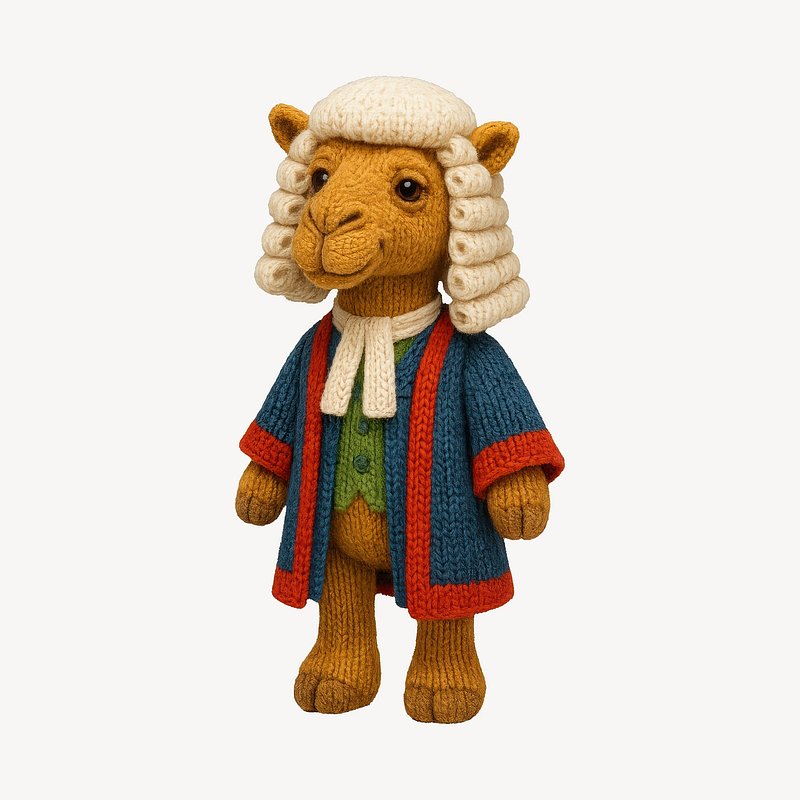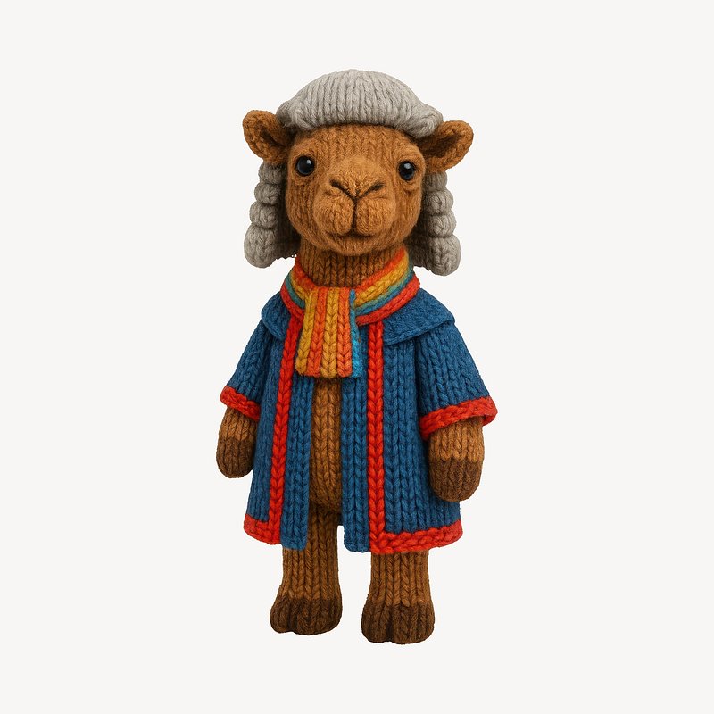 Knitted camel judge character https://www.rawpixel.com/image/24531888/knitted-camel-judge-characterView license