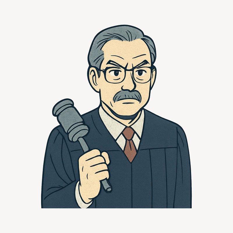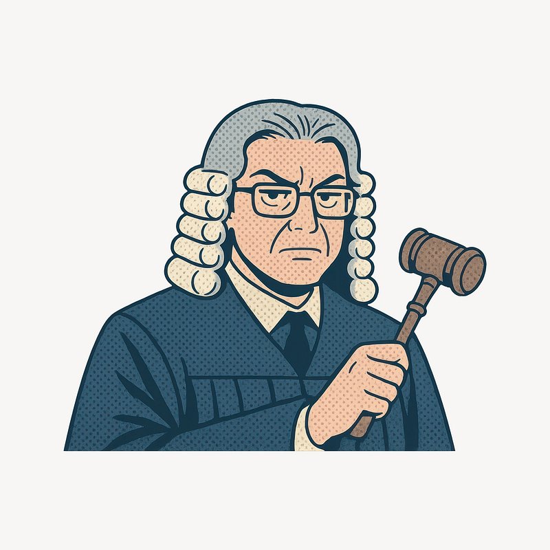 Cartoon judge holding gavel. https://www.rawpixel.com/image/24719167/cartoon-judge-holding-gavelView license