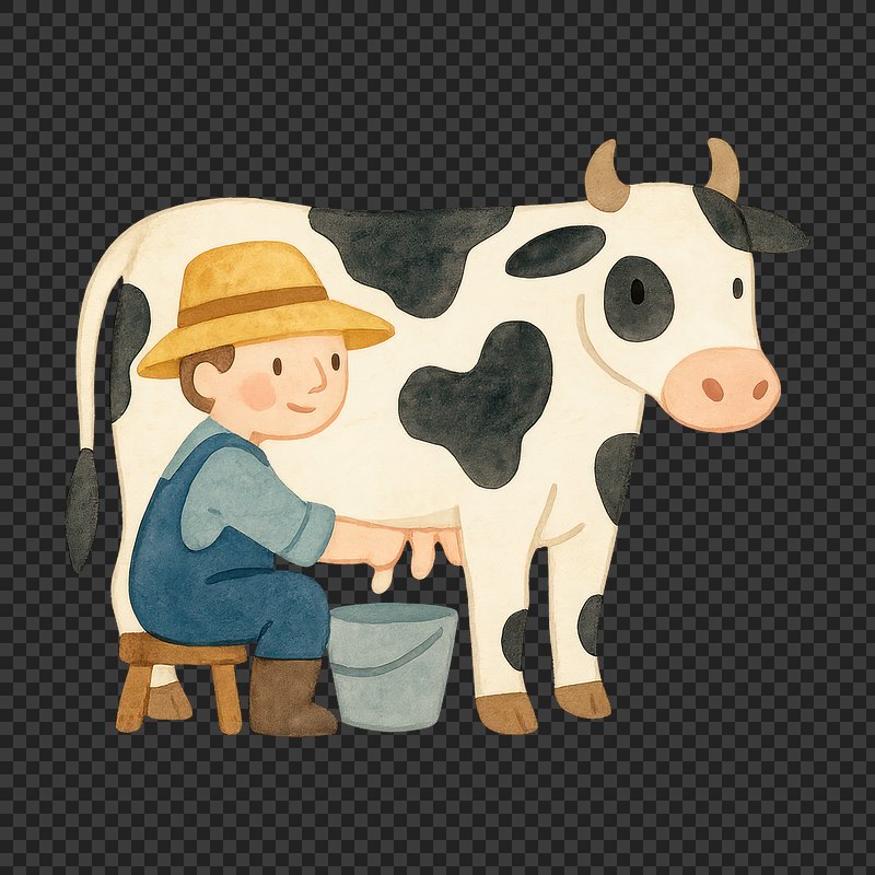 PNG Charming farmer milking cow illustration. https://www.rawpixel.com/image/19212914/png-charming-farmer-milking-cow-illustrationView license