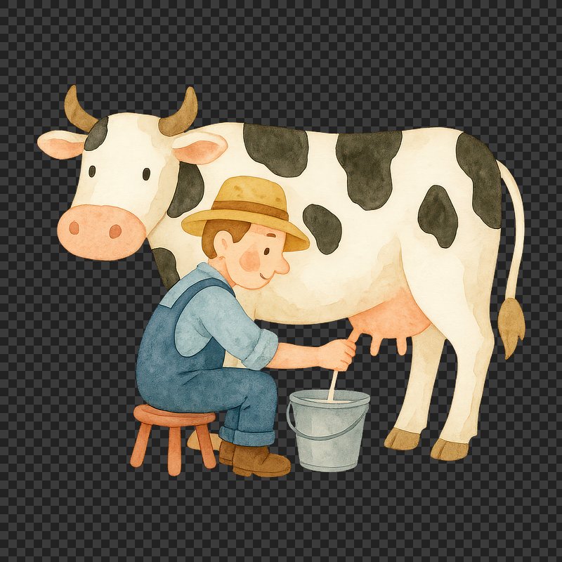Farmer milking cow illustration. https://www.rawpixel.com/image/20669530/farmer-milking-cow-illustrationView license