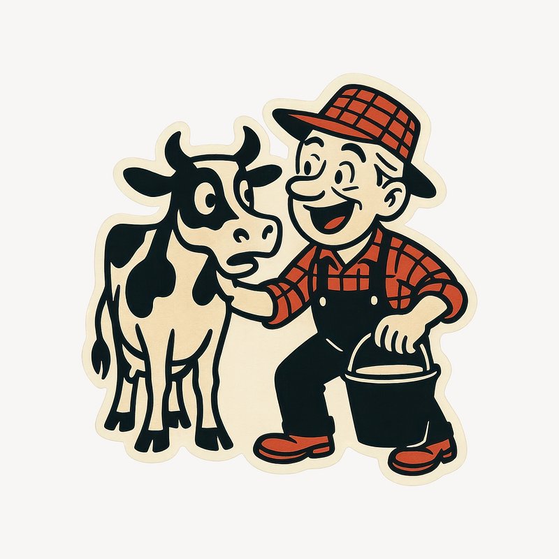Retro farmer milking cow illustration. https://www.rawpixel.com/image/21617718/retro-farmer-milking-cow-illustrationView license