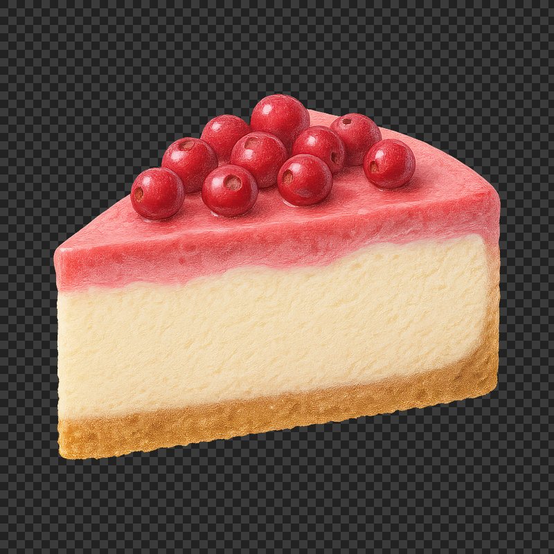 PNG Delicious cheesecake slice topped berries. https://www.rawpixel.com/image/22624477/png-delicious-cheesecake-slice-topped-berriesView license