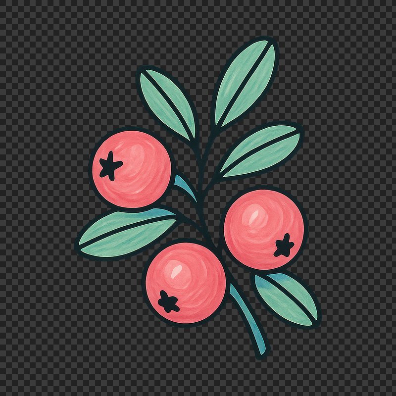 PNG Vibrant cartoon cranberries with leaves. https://www.rawpixel.com/image/23831817/png-vibrant-cartoon-cranberries-with-leavesView license