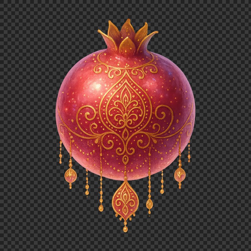 PNG Ornate pomegranate with golden details. https://www.rawpixel.com/image/24052213/png-ornate-pomegranate-with-golden-detailsView license