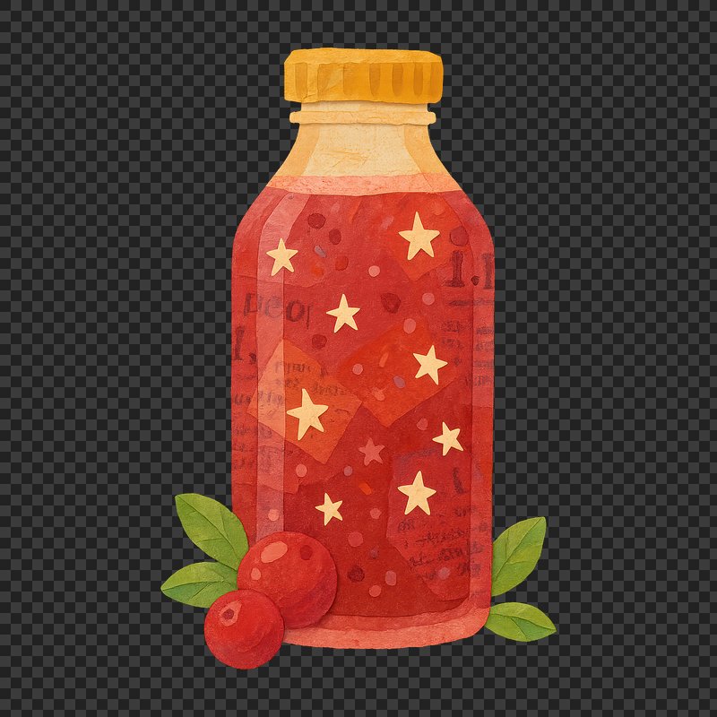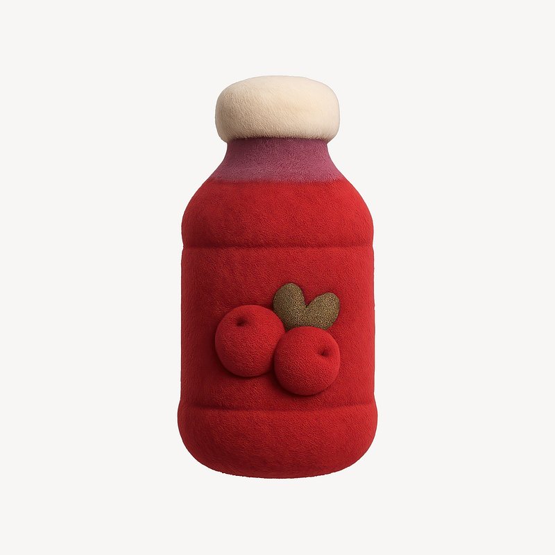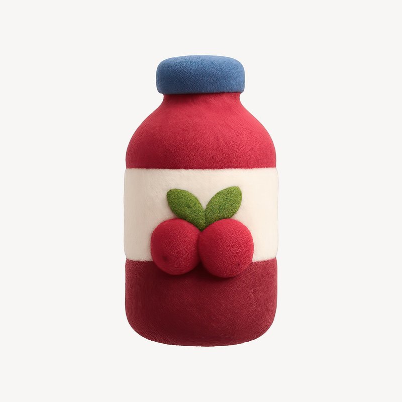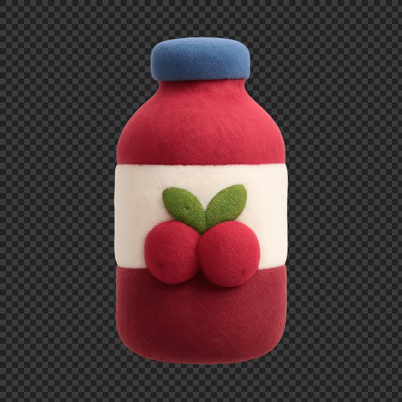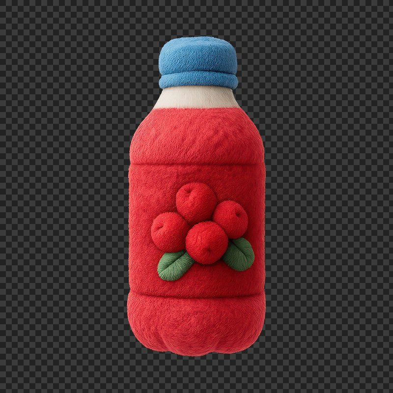 Plush cherry juice bottle illustration. https://www.rawpixel.com/image/22838982/plush-cherry-juice-bottle-illustrationView license
