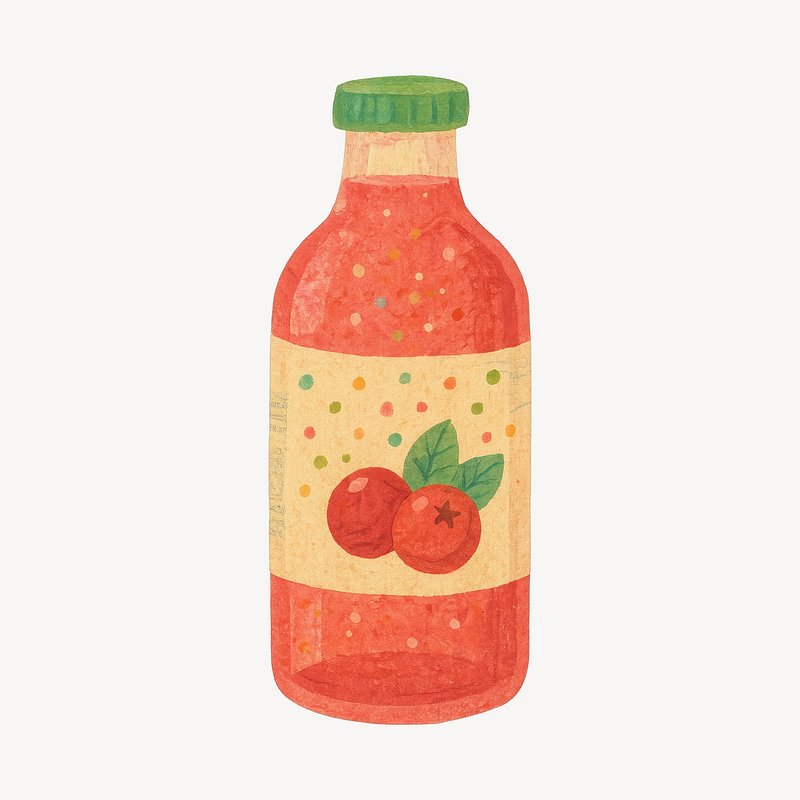 Illustrated cranberry juice bottle. https://www.rawpixel.com/image/22908584/illustrated-cranberry-juice-bottleView license