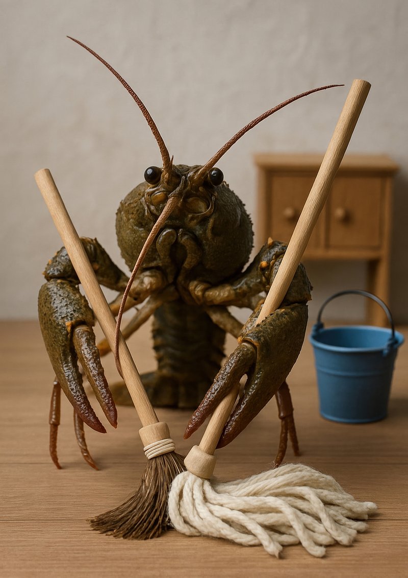 Crayfish cleaning with mops https://www.rawpixel.com/image/17785631/crayfish-cleaning-with-mopsView license