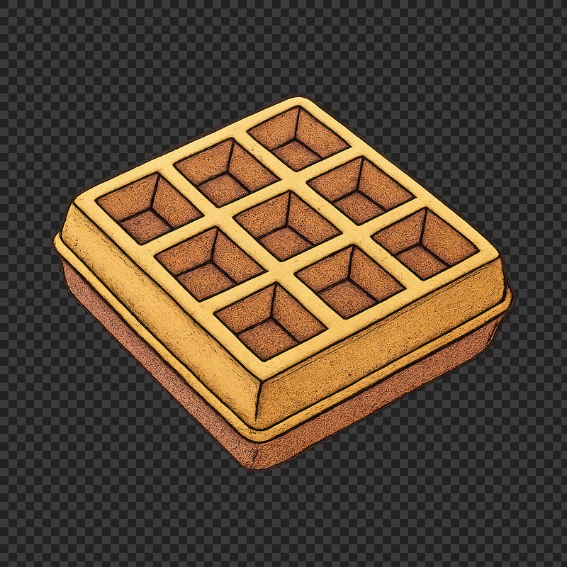 PNG Square waffle breakfast treat. https://www.rawpixel.com/image/24480745/png-square-waffle-breakfast-treatView license