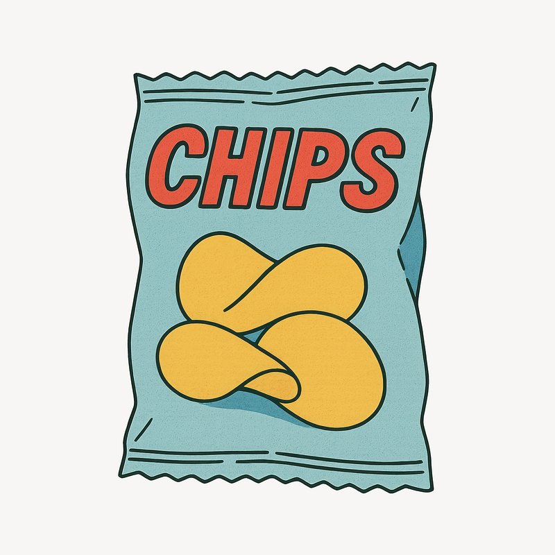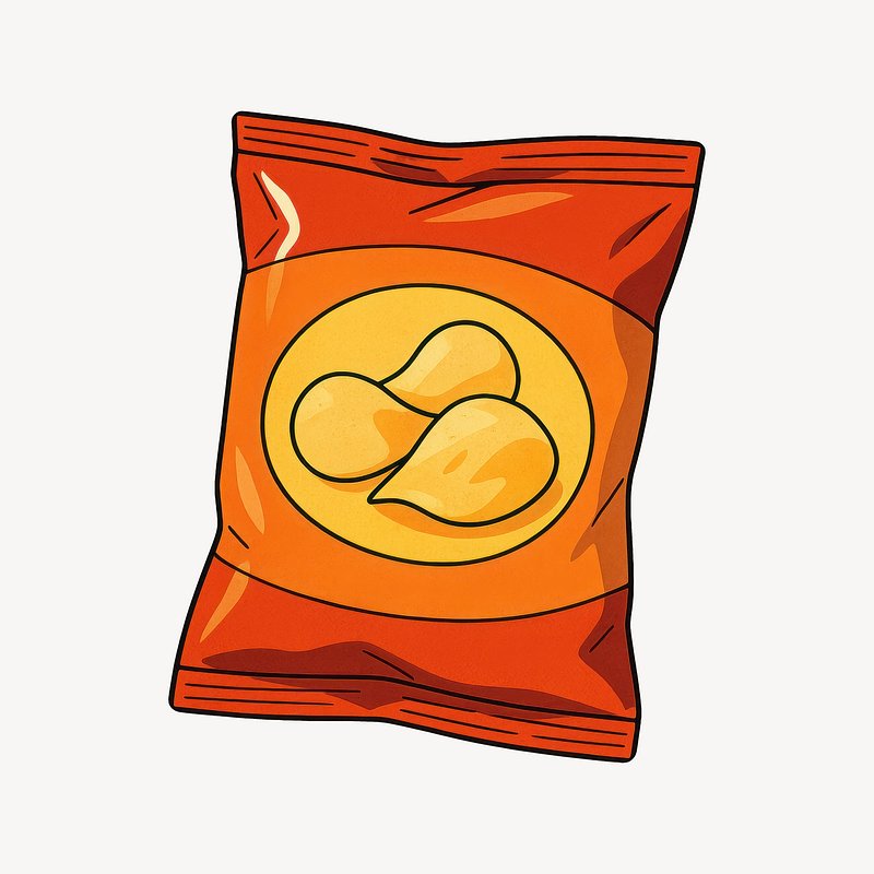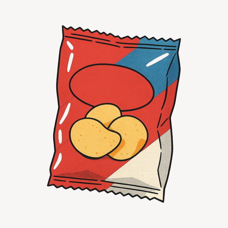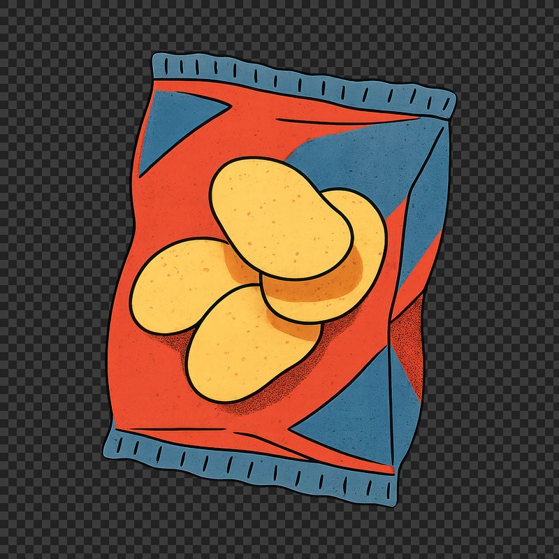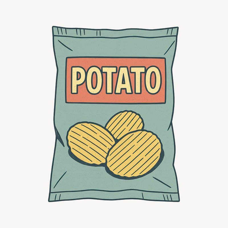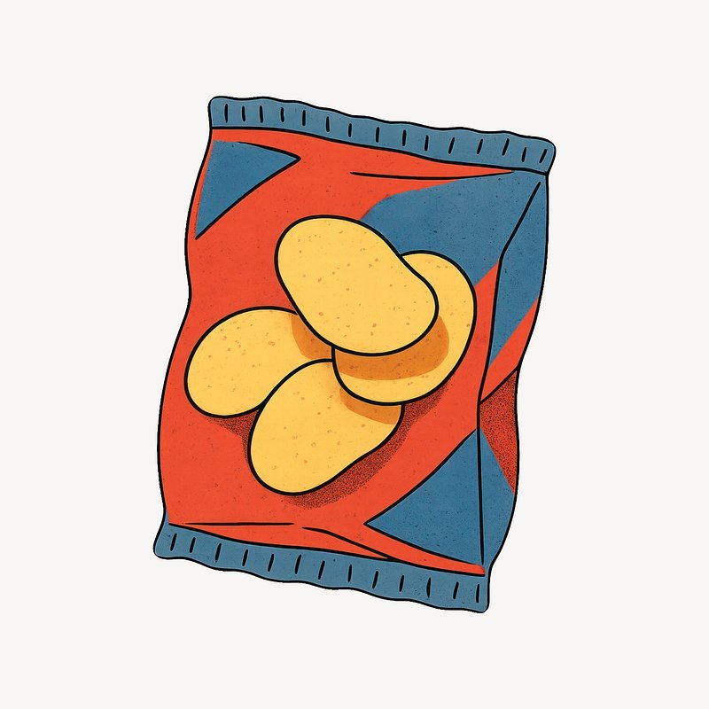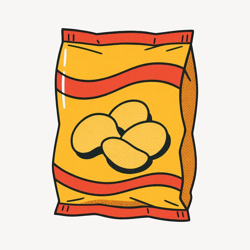 Illustrated potato chips bag https://www.rawpixel.com/image/24717818/illustrated-potato-chips-bagView license