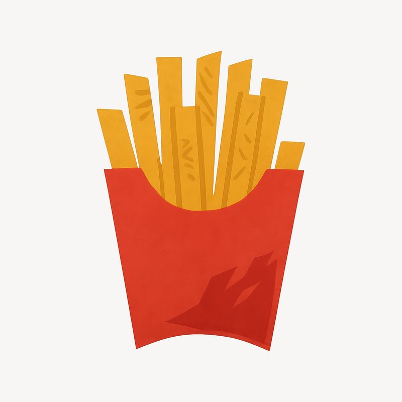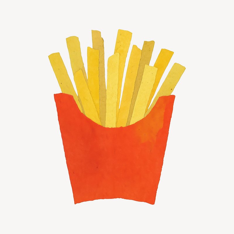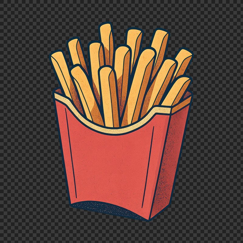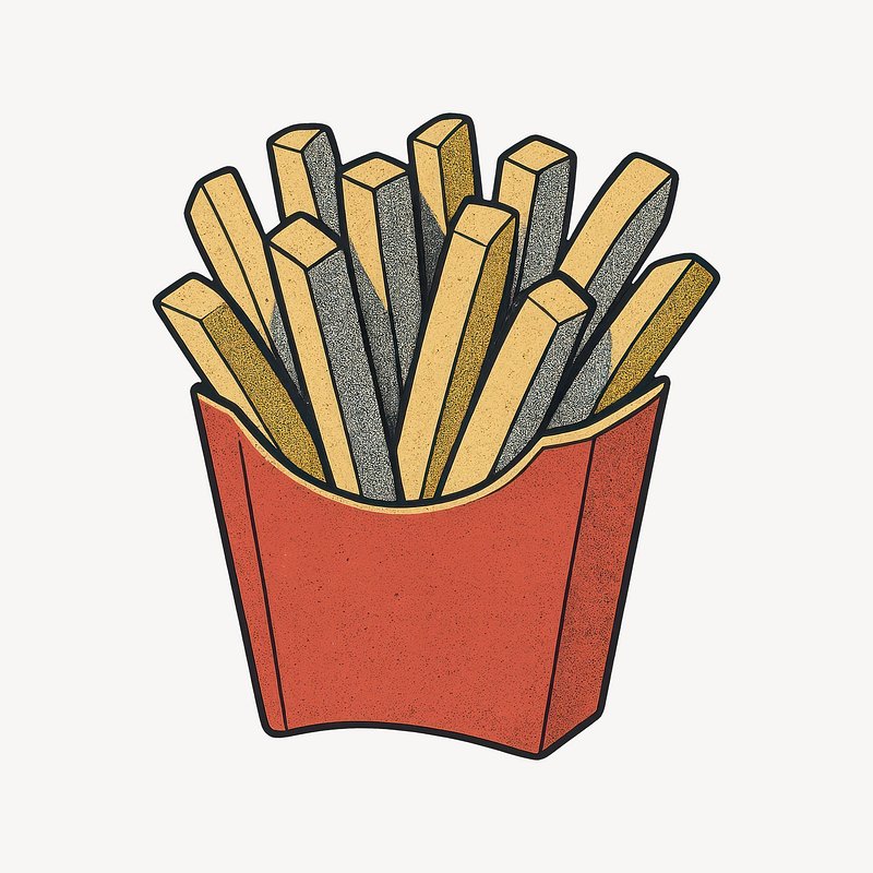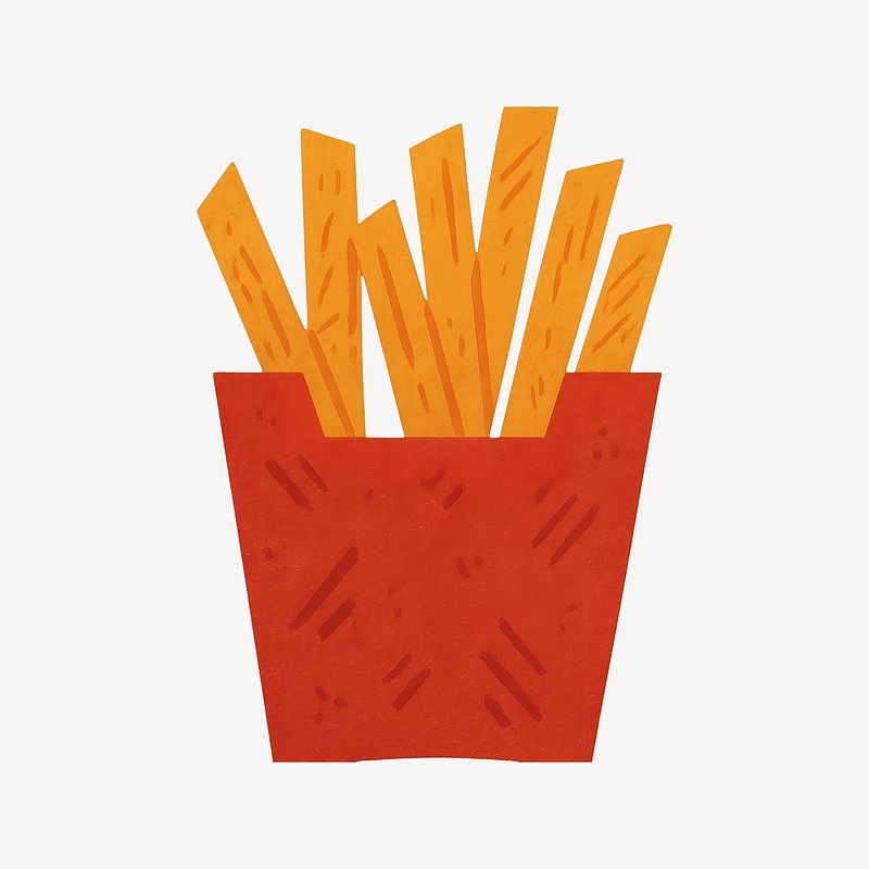 Illustrated crispy fries package https://www.rawpixel.com/image/24490779/illustrated-crispy-fries-packageView license