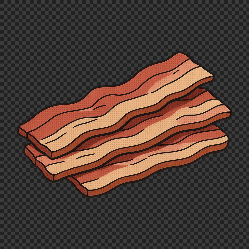 Illustrated crispy bacon strip https://www.rawpixel.com/image/24720630/illustrated-crispy-bacon-stripView license