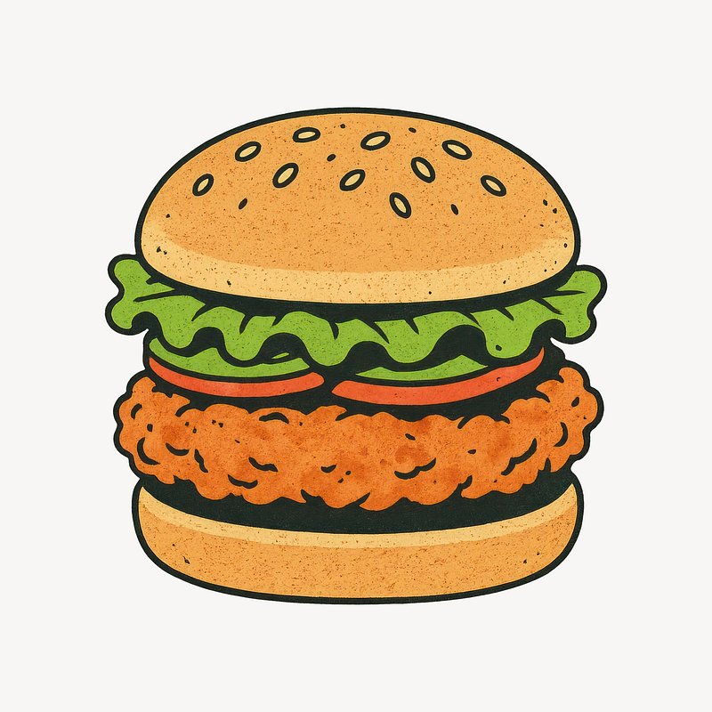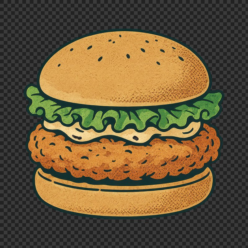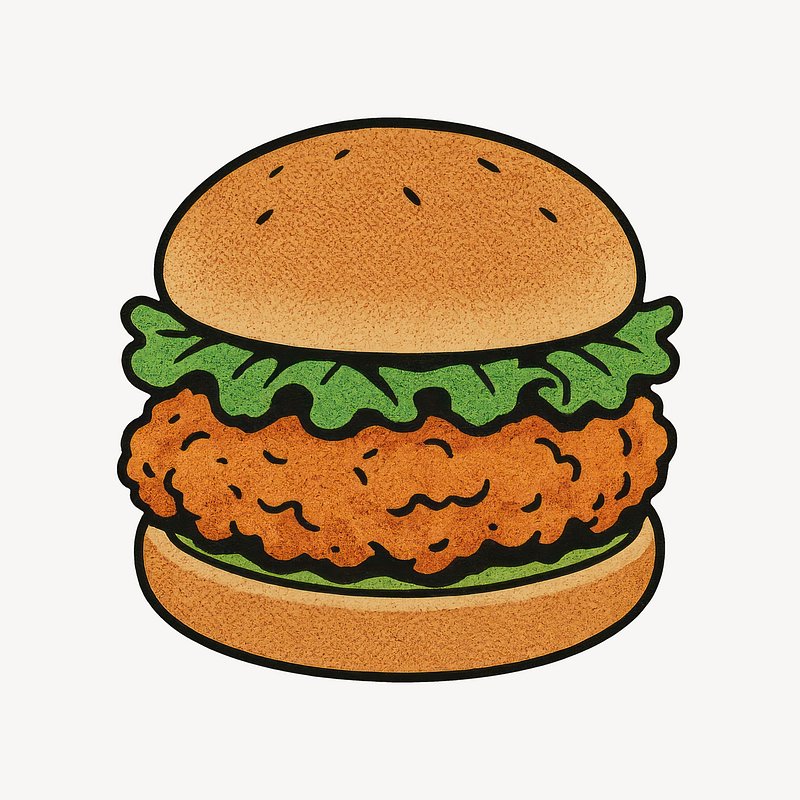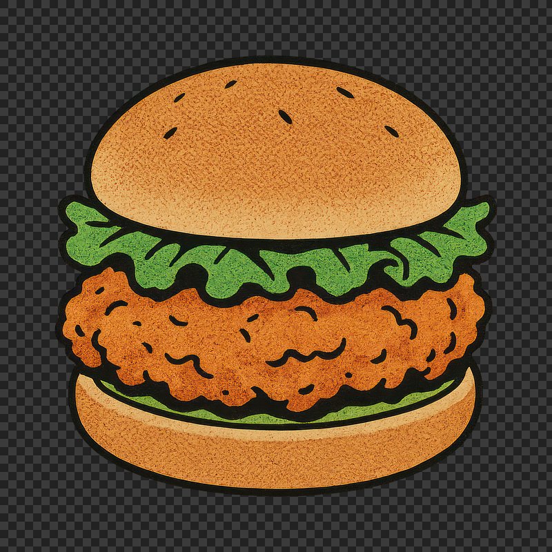 Illustrated crispy chicken burger. https://www.rawpixel.com/image/24719148/illustrated-crispy-chicken-burgerView license