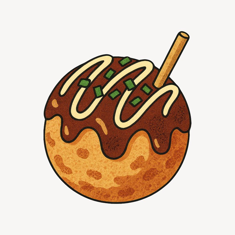 Illustrated takoyaki with toppings. https://www.rawpixel.com/image/24717889/illustrated-takoyaki-with-toppingsView license