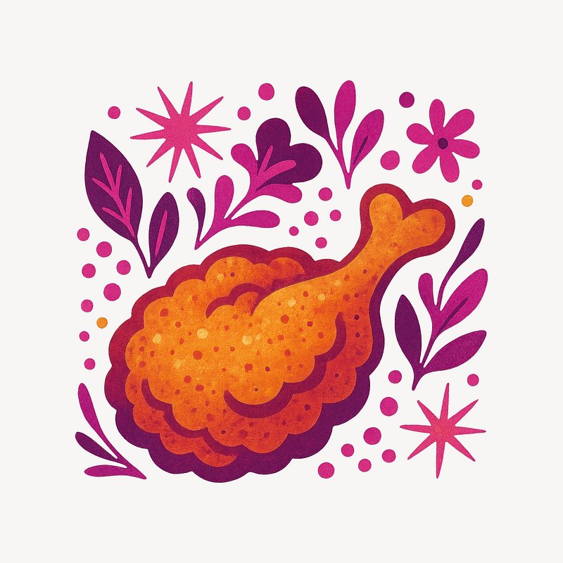 Colorful fried chicken illustration https://www.rawpixel.com/image/24659971/colorful-fried-chicken-illustrationView license