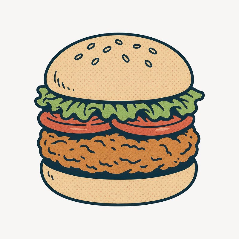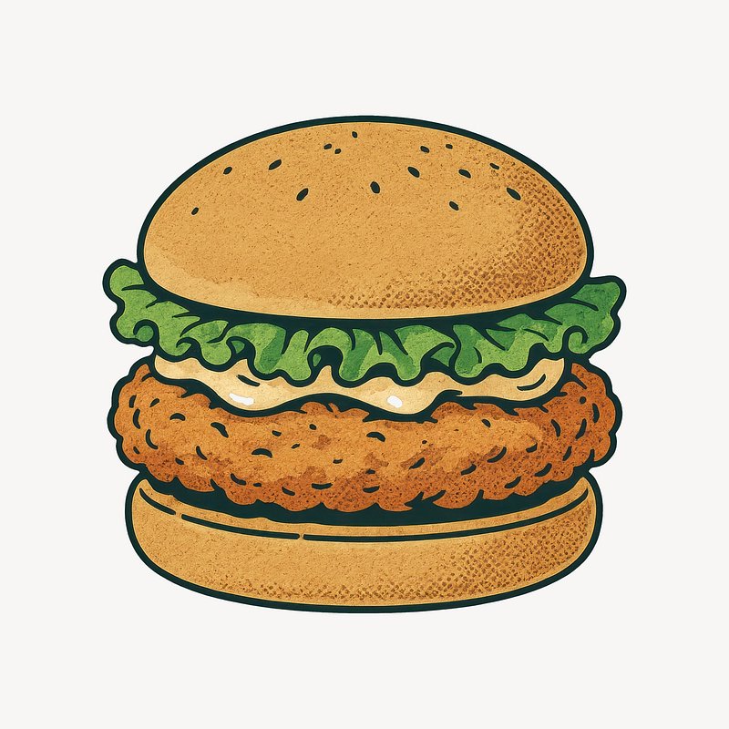 Illustrated crispy chicken burger https://www.rawpixel.com/image/24719690/illustrated-crispy-chicken-burgerView license