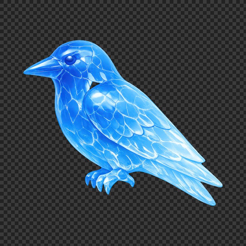 PNG Blue glass bird sculpture. https://www.rawpixel.com/image/25313479/png-blue-glass-bird-sculptureView license