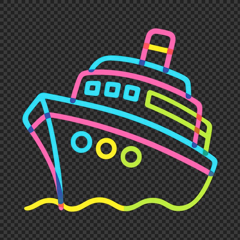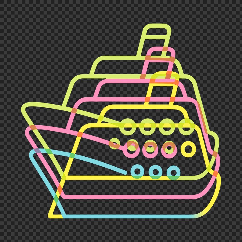 PNG Colorful neon cruise ship illustration. https://www.rawpixel.com/image/22682915/png-colorful-neon-cruise-ship-illustrationView license