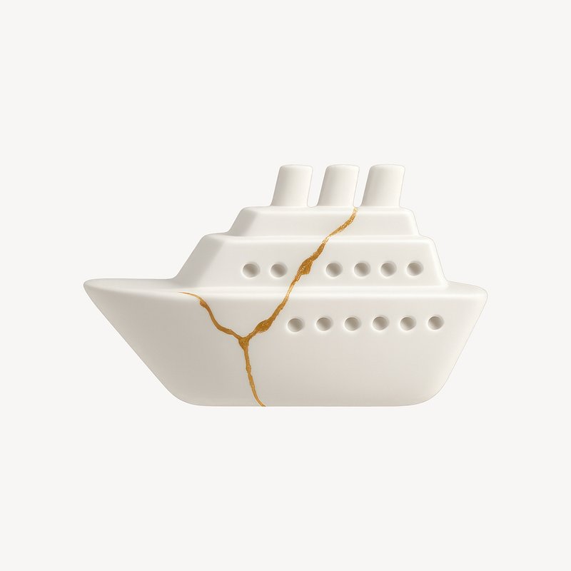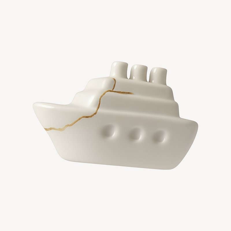 Ceramic ship with golden crack https://www.rawpixel.com/image/23025076/ceramic-ship-with-golden-crackView license