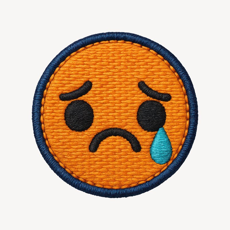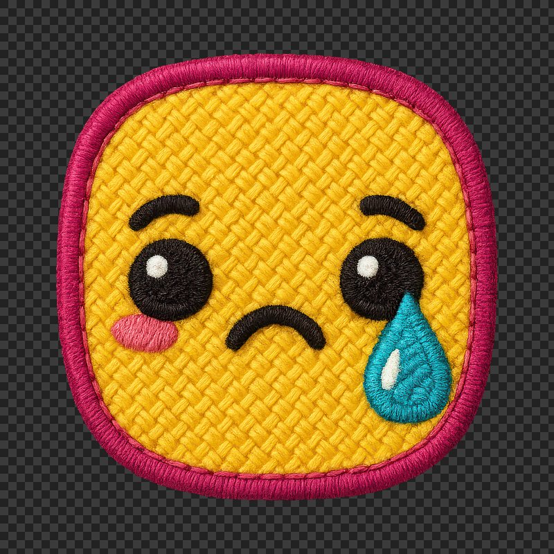 Embroidered sad emoji patch https://www.rawpixel.com/image/22125551/embroidered-sad-emoji-patchView license