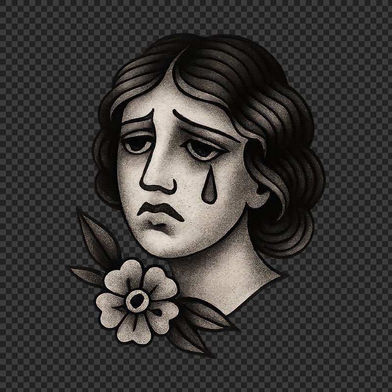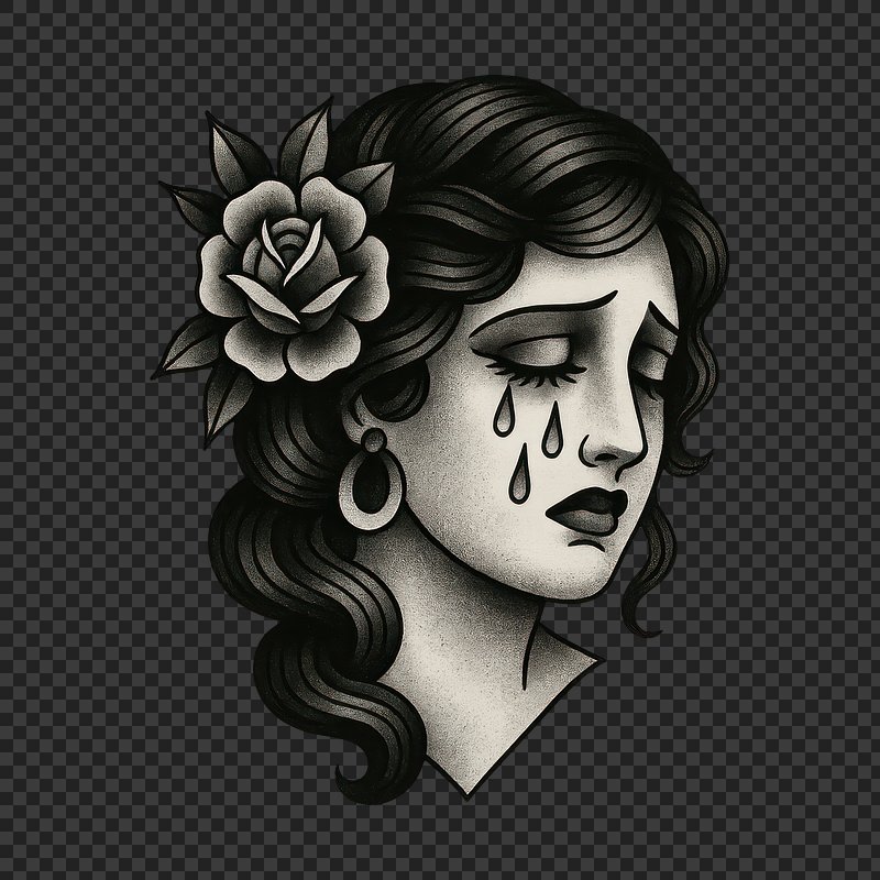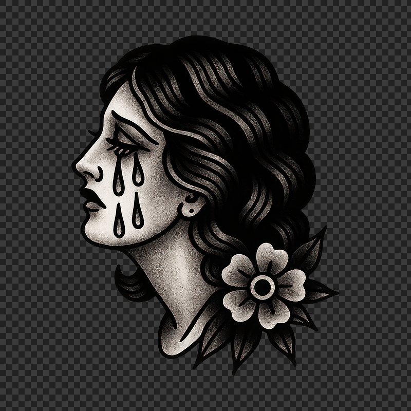 PNG Vintage tattoo crying woman https://www.rawpixel.com/image/22881091/png-vintage-tattoo-crying-womanView license