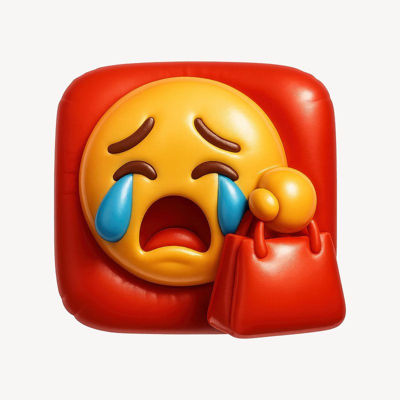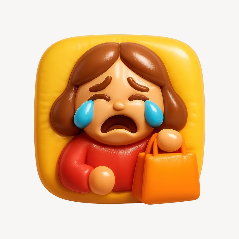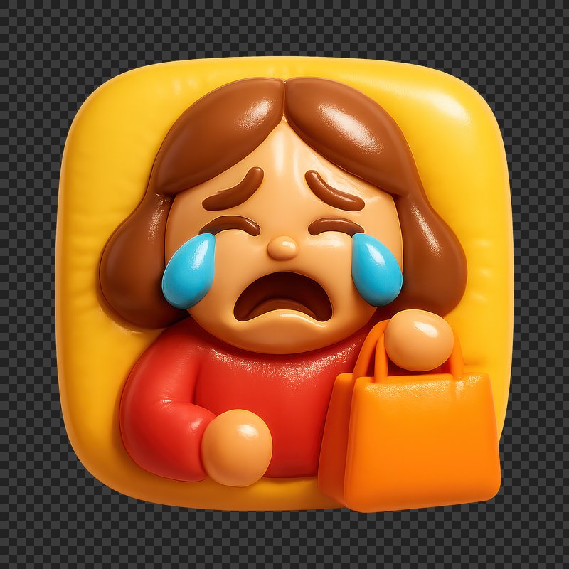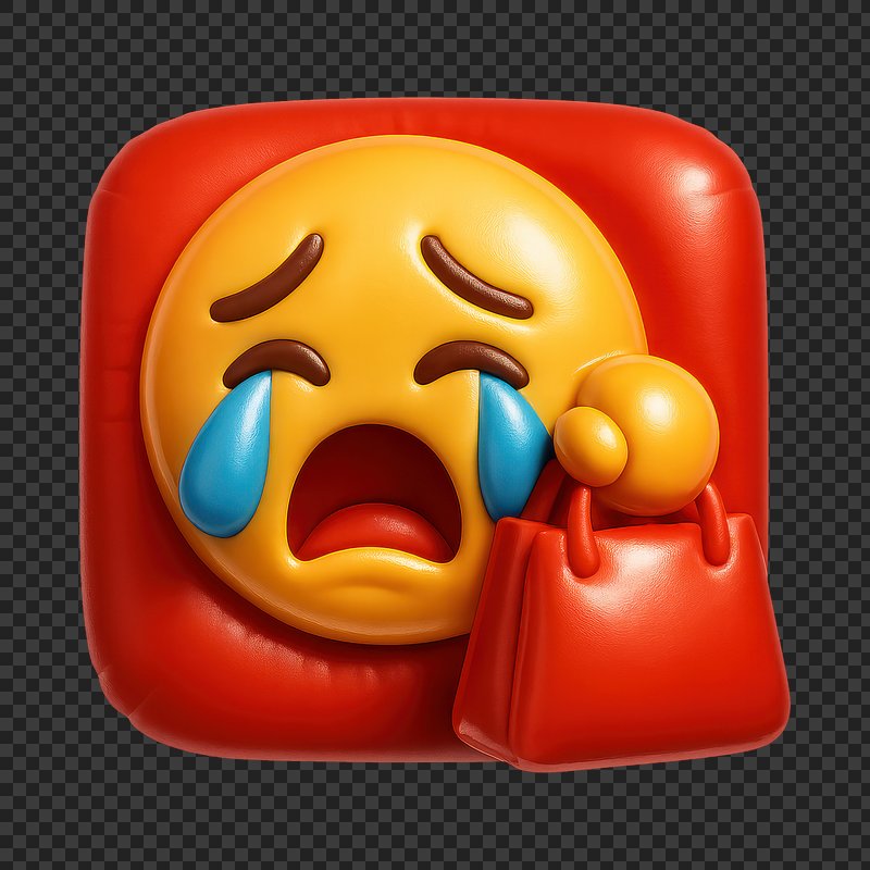 Crying emoji with shopping bag https://www.rawpixel.com/image/23078463/crying-emoji-with-shopping-bagView license