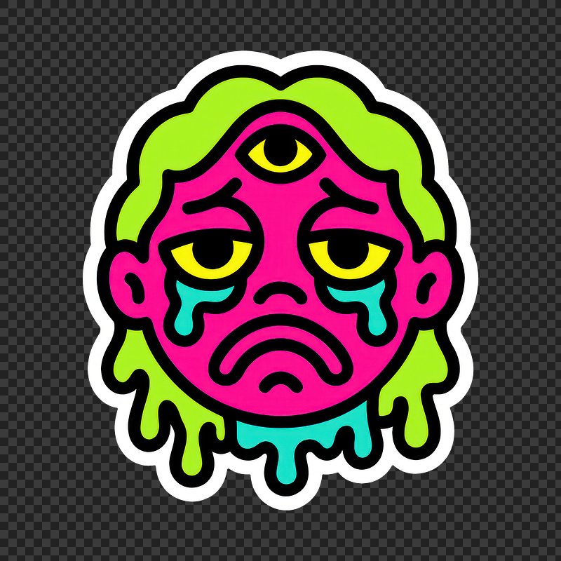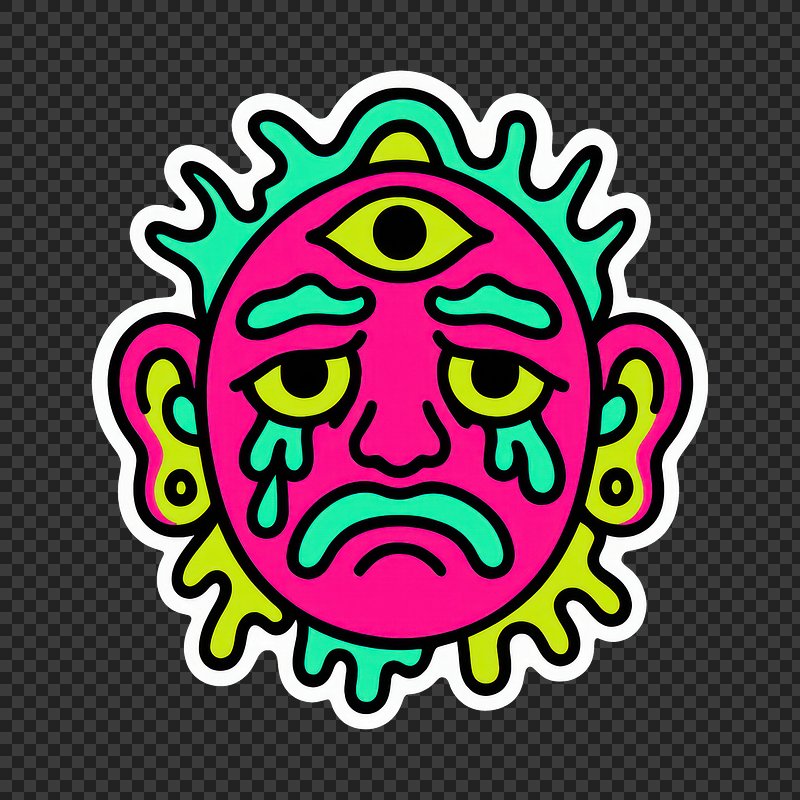 PNG Colorful psychedelic crying face https://www.rawpixel.com/image/23905432/png-colorful-psychedelic-crying-faceView license