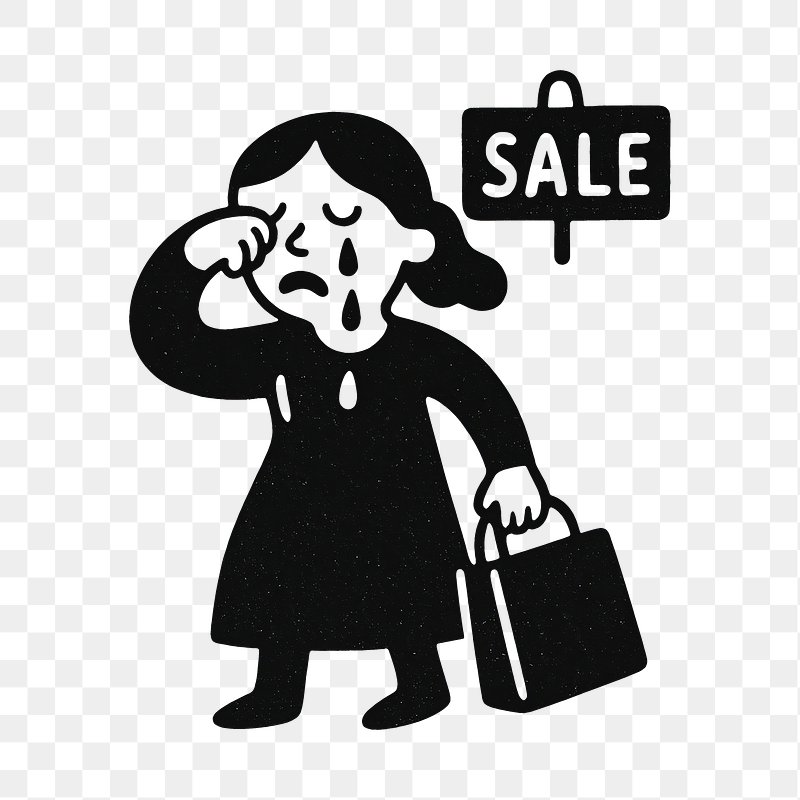 PNG Crying shopper holding sale bag. https://www.rawpixel.com/image/22298925/png-crying-shopper-holding-sale-bagView license
