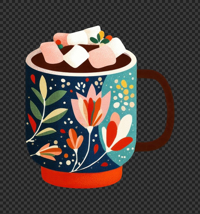 PNG Colorful floral mug illustration. https://www.rawpixel.com/image/22940637/png-colorful-floral-mug-illustrationView license