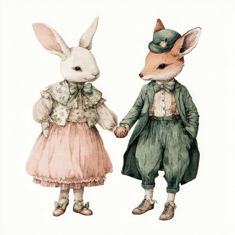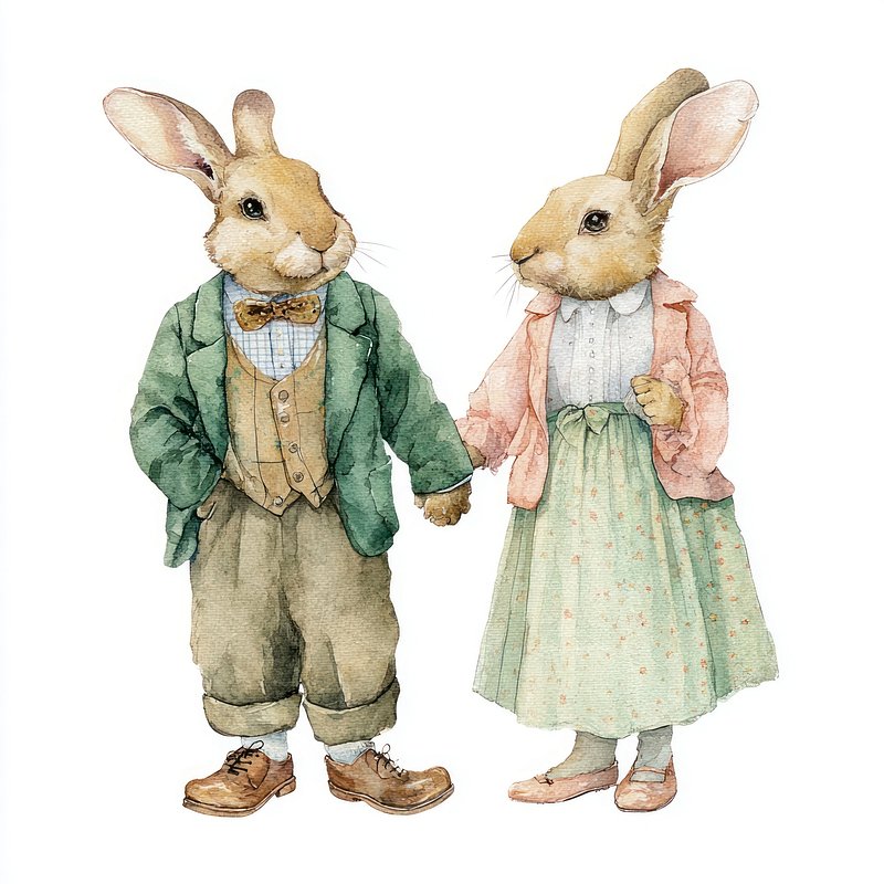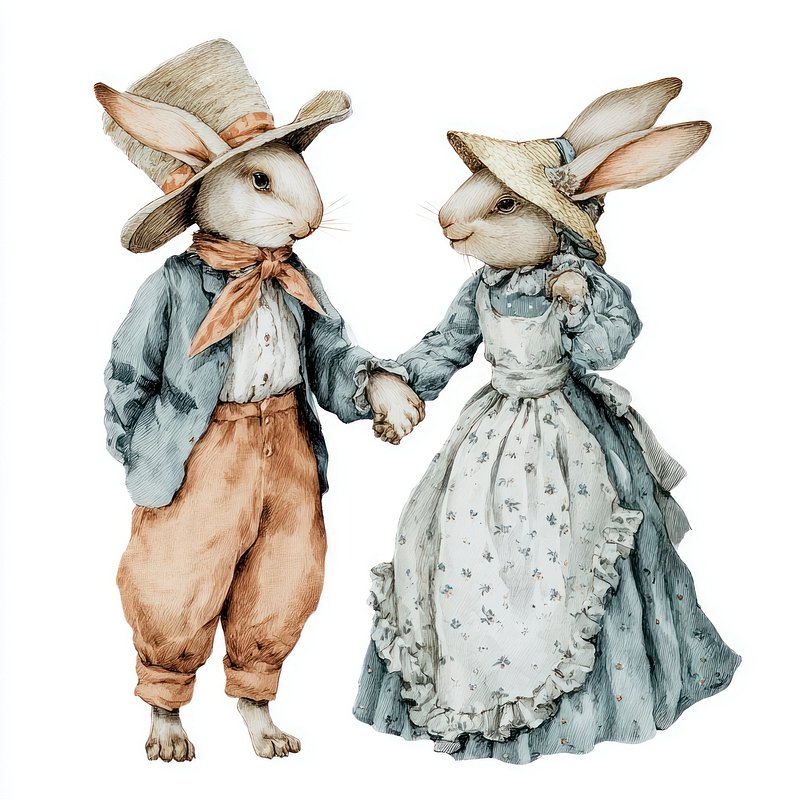 Charming rabbits in vintage attire. https://www.rawpixel.com/image/24789799/charming-rabbits-vintage-attireView license