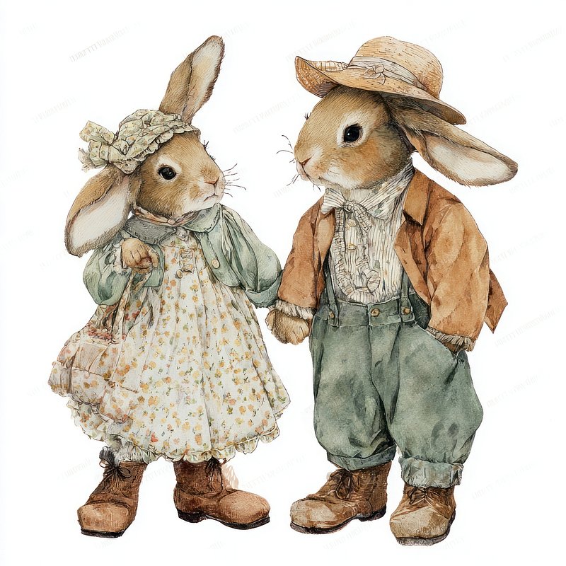Charming rabbits in vintage attire. https://www.rawpixel.com/image/24789757/charming-rabbits-vintage-attireView license